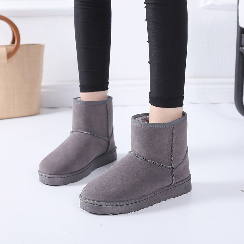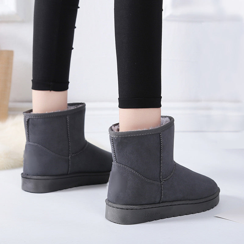 Conçue en suédine souple, elle séduit par son fourrure intérieure ultra-douce, sa forme ronde et son tige mi-haute au style minimaliste. Sa semelle en caoutchouc antidérapante et son talon plat assurent une allure naturellement stable et harmonieuse.